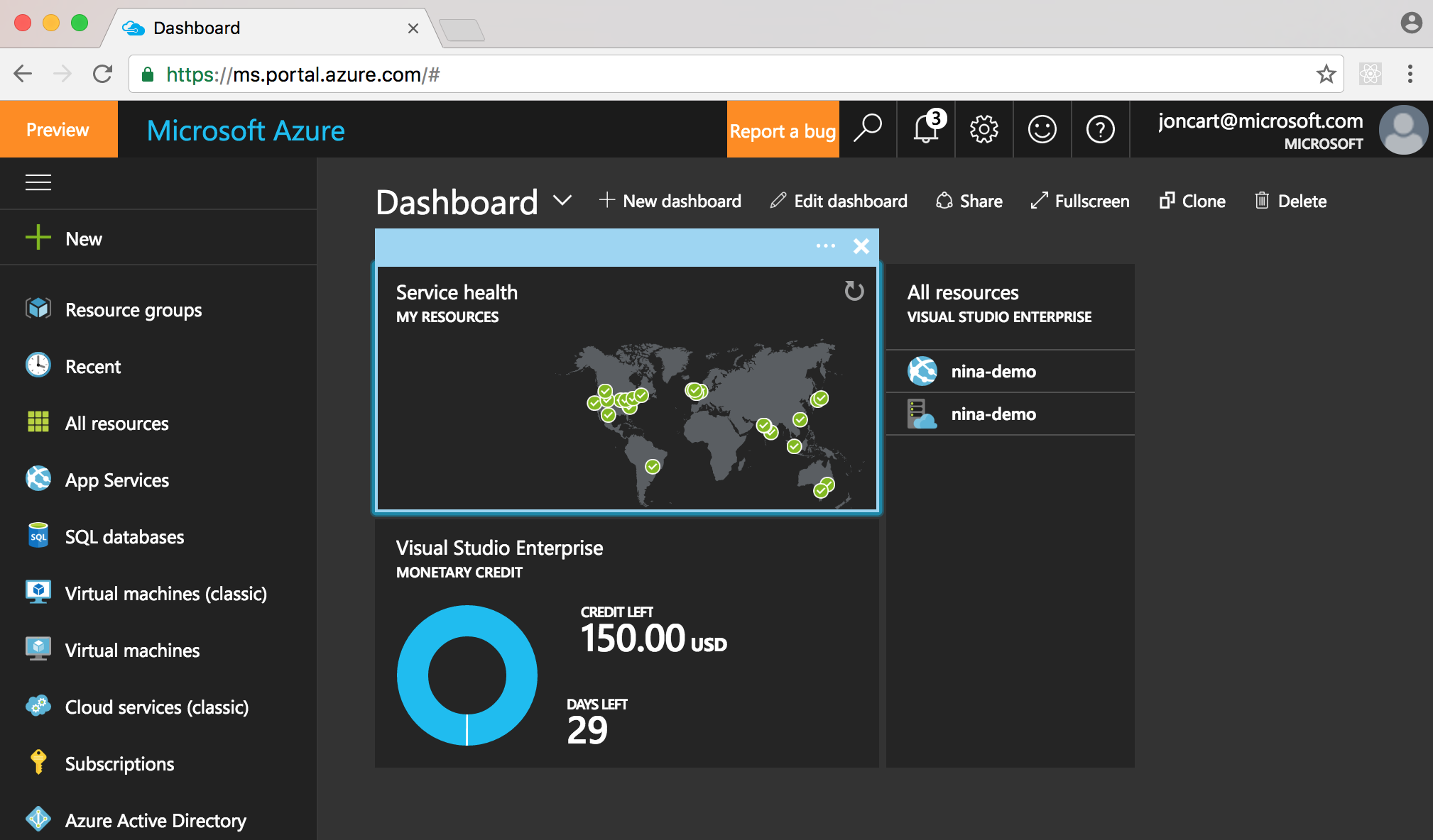 - portal.azure.com にアクセスし、CLI で使用していたのと同じアカウントでサインインします。