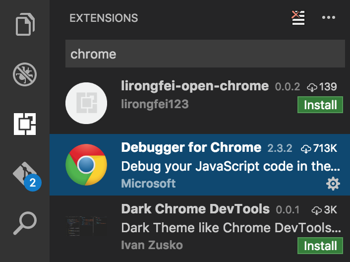 Debugger for Chrome という名前の拡張機能を選択し、インストールボタンをクリックします。これを行った後、拡張機能をアクティブにするには VS Code を再読み込みする必要があります。再起動後もワークスペースは保持されるので、状態が失われる心配はありません。