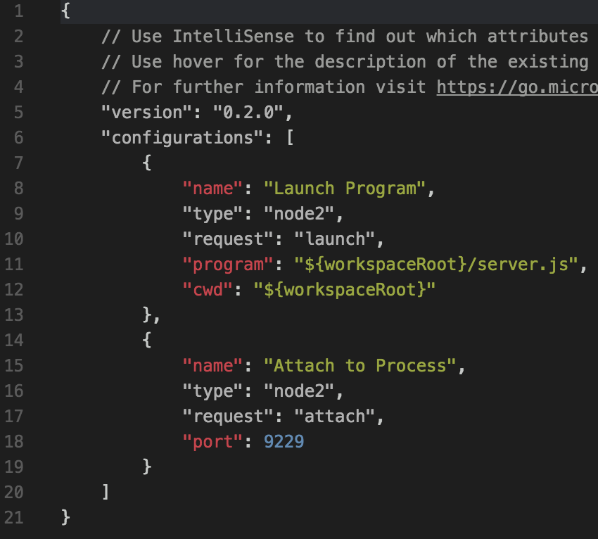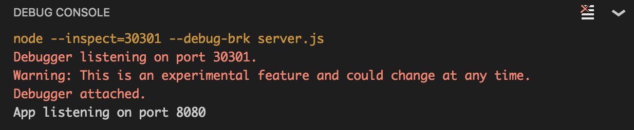 アプリの起動スクリプトが server.js であることを検出できたことに注意してください。繰り返しになりますが、デバッグが機能するように何も変更する必要はありません。