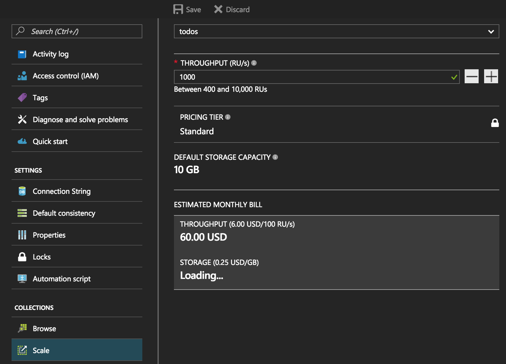 必要に応じて、DocumentDB インスタンスに戻り、MongoDB インスタンスが必要とする予約済みスループットをスケールアップ (またはスケールダウン) し、手動でインフラストラクチャを管理することなく、追加のトラフィックの恩恵を受けることができます。
