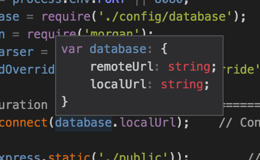 database変数にカーソルを合わせると、その「型」を確認できます。ファイル内の変数/モジュール/型を素早く検査するこの機能は、特にコードを書くよりも読んだり理解したりする時間の方が多い傾向があるため、非常に便利です。