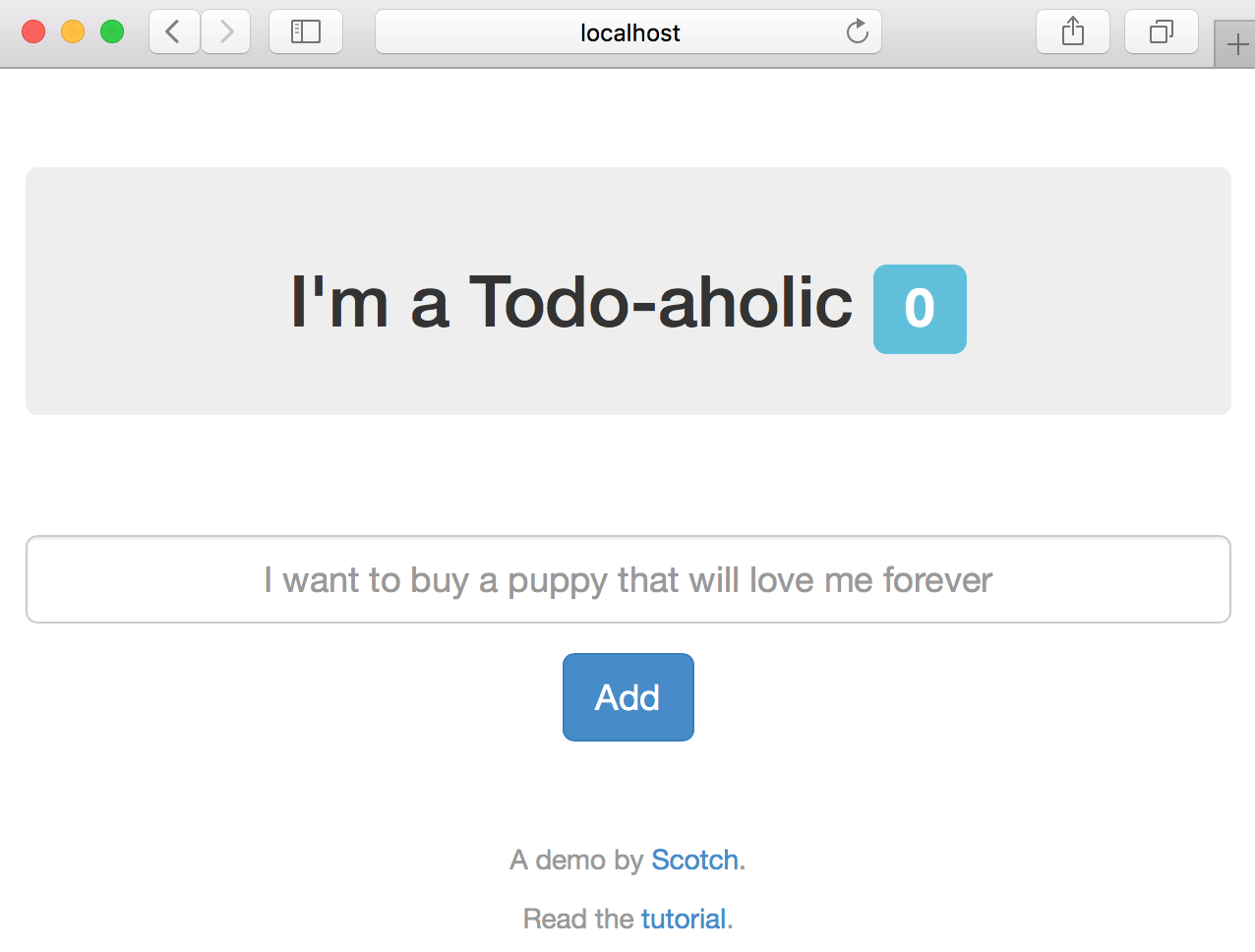 このデモでは、Scotch.ioが作成・公開したシンプルなTodoアプリを使用しています。これはシングルページのMEANアプリケーションであり、MongoDBをデータベースとして、Node/ExpressをREST API/Webサーバーとして、Angular.js 1.xをフロントエンドUIとして使用しています。興味のある特定のセクションにジャンプするには、以下の目次を使用してください。それ以外の場合は、読み進めてください。